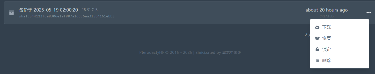 目录 搜索 展开 ✨简介《基础篇》开服小知识基础知识MC各版所需JDK版本面板使用教程关于面板控制台文件SFTP教程计划备份网络启动《进阶篇》开服小知识文件结构关于启动命令server.properties文件详解启动脚本限制内存 暂无相关搜索结果! 阅读次数:240 本文档使用 MinDoc 发布 备份 以上图片是创建服务器备份 备份好文件后可进行如上图所示操作,一键恢复数据等等 作者:Starvps 创建时间:2025-05-19 13:51最后编辑:Starvps 更新时间:2025-05-19 13:53